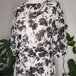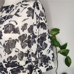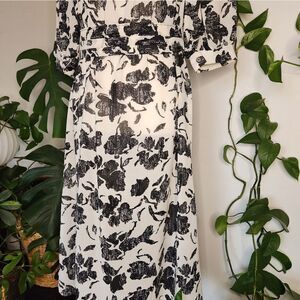 Vintage Puff Sleeve Dress Black & White Floral Midi 1940s 1950s Holiday Classic