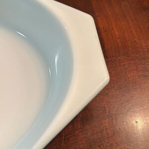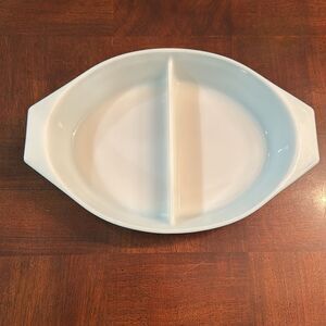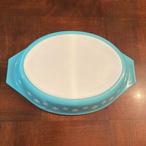 Vintage Pyrex White on Turquoise Snowflake 1 1/2 qt Divided Casserole Dish