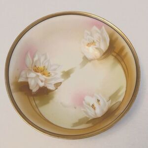 1 Serving and 6 Dessert / Berry Dishes, Eggshell Porcelain Bowls hand painted with gold rims