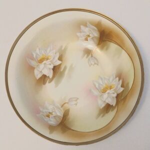 All are in very good pre-owned condition, with no scratches, nicks, cracks or crazing. Serving bowl has some wear showing on the gold trim. Two of the dessert bowls have a small yellow stain on the backs, see pictures.
