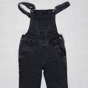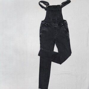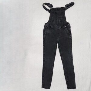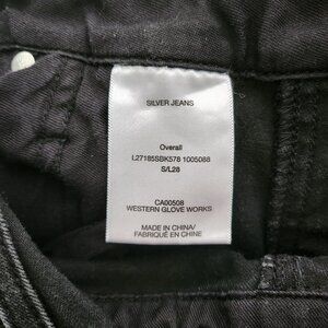 Y2K. Silver Jeans Company Vintage/Retro Overalls in Black colour. Size Small(4-6 size or waist 27-29). Denim, skinny legs. Lots of Pockets, has belt loop style waistline, and a zipper side. Has decent stretch. Great to excellent preloved vintage condition. Cotton/Polyester/Viscousse/Elastine. 15 inches flat waist aprox, and 29 inches inseam aprox.