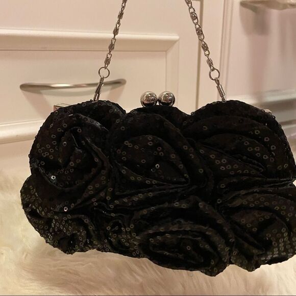 Vintage Rose Sequin Clutch Crossbody Black