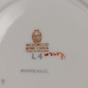 Wedgwood & Sons bone china in the Pink Pimpernel Pattern #3652 was designed by Victor Skellern in 1939. It was discontinued in 1964.