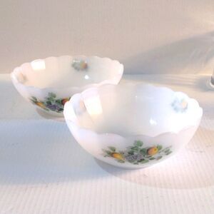 Vintage Set of Two Scalloped Milk Glass Nesting Bowls Arcopal Fruits de France