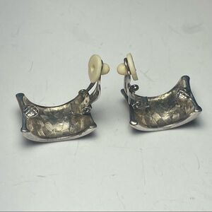 Vintage Silver Tone Leopard Print Enamel Hoop Clip On Earrings