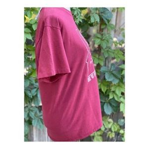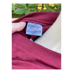 Size large on tag. Shirt brand is Stedman super 50. No holes, tears or stains. Pet and smoke free home.