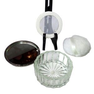 Vintage Vanity Glass Powder Box Powder Puff with Silver Plated Lid
