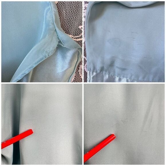 Burton down sleep shirt with elastic waist shorts . Set has 3-4 faint stains as shown in last picture and small rip in the seam of blouse .