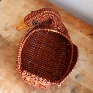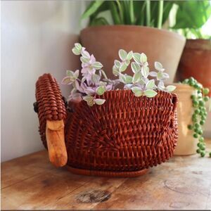 Vintage Wicker Swan Planter Basket Decoration Brown