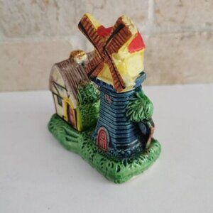 Vintage Windmill House Salt & Pepper Set, Vintage Kitsch Japan Ceramic with Base 3 Pieces Kitchen Dining Decor