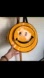 Plastic yellow happy face backpack, with two compartments.