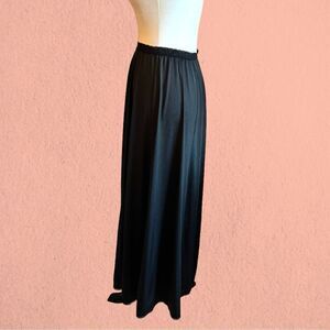 Lovely vintage black slip skirt with lace trim. True slip skirt but can definitely be worn out and about. Boho grunge style with the lace trim on top and bottom. Labeled a size large but not true to size best fits a medium. Excellent condition.