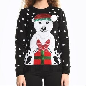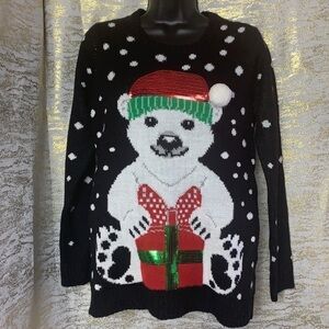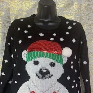 - Gorgeous black ugly Christmas pull over knitted sweater with polar bear print .so soft and comfy to wear