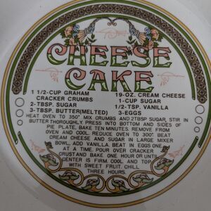 Vintage cheesecake recipe pie plate, cheesecake pie dish