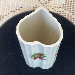 Vintage heart shaped Christmas vase || JAPAN || vintage flying Santa on a candy cane vase || Small vintage vase || Santa Claus ceramic vase