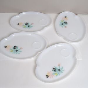 vintage 1960silk glass snack plates. these have a place for a cup and snacks. these normally come with a cup but these don't have it.