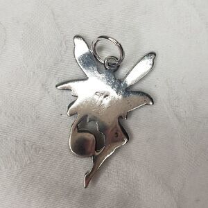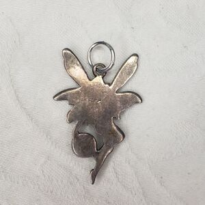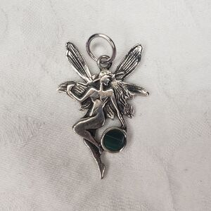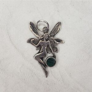 Vintage 1990s winged Faerie 925 Silver Fairy Pendant with Emerald Green Malachite circular Stone, Excellent Vintage Condition, New Silver Bail added a few years ago.