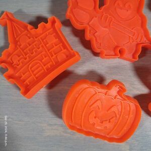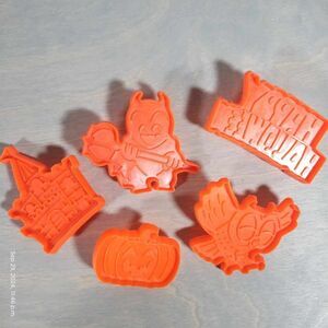 Vintage wilton halloween orange cookie cutters, imprint plastic 5pc set