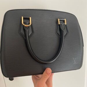 This hanbag made of black Epi leather and gold colored hardware, features the iconic « Toron » leather handles and a top zipper closure