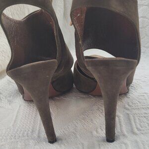 Viola Vinca shoes. Leather. Made in Italy. 4" heal. Great condition. The color is military green/ khaki. Will fit a narrow foot.