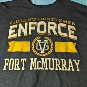 the violent gentlemen clothing company started on the hard-working backs of hockey's enforcers. this violent gentlemen Fort McMurray shirt was released a few years back due to the wildfires. Violent Gentlemen gear is extremely comfortable and lasts a long time.