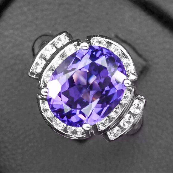 Striking Royal Purple Amethyst 4.80Ct 925 Sterling Silver with white sapphire accent stones and gold plated settings, stems and backs. Handmade Ring Sz 6. When it comes to lovely and gorgeous gemstones, meet the elegant amethyst gemstone! The main stone is not enhanced (heat treated).