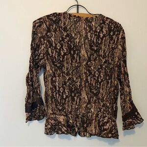 Violet & Claire 3/4 Sleeve Blouse Brown White Size Small Lace Boho
