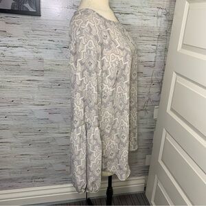 Violet + Claire Tan Crepe Blouse Paisley Print Long Sleeves Key Hole Top Sz L