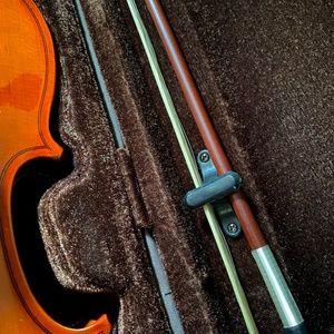 This comes with extra strings, rosin, a bow, belt and shoulder rest.