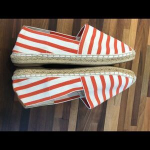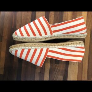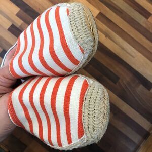 Vionic Coast Valeri Orange White Stripe Canvas Jute Slip On Espadrille Sandals Sz 7