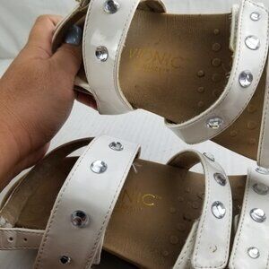 Vionic Orthaheel Teagan White Rhinestone Sandals