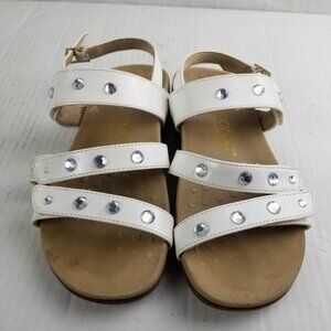 Very comfortable Podiatrist approved sandals Shows minor staining and signs of wear with 1 missing rhinestone