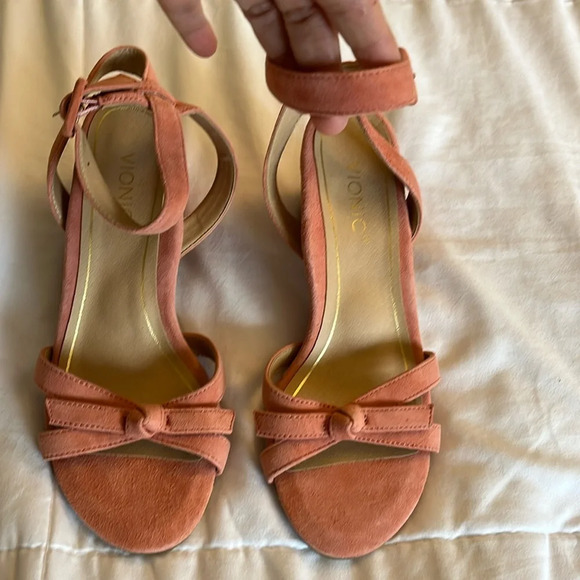 Vionic Rosabel heel suede sandals stunning coral pink color size 5 NWOT
