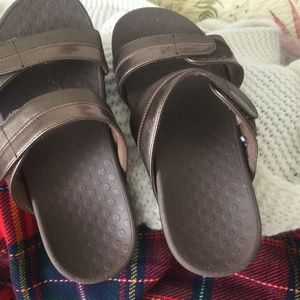 Very supportive casual shoe; I specifically purchased them for arch support but got orthotics shortly after so I haven’t needed them. Strong velcro adjustable straps.