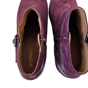 Vionic Womens Farrah Ankle Bootie, Port Wine, Suede, Comfort, Size 7.5