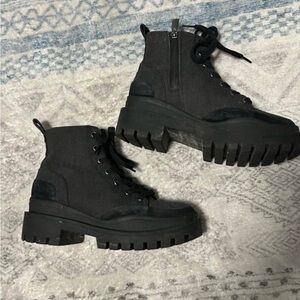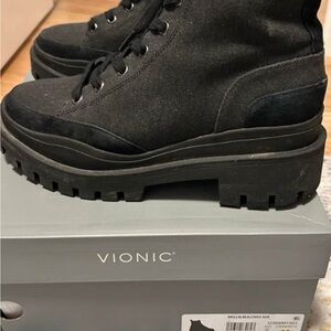 Vionic Mellie boot. Vionic brand is known for their outstanding arch support. Size 7. These boots are both beautiful and comfortable and sadly don’t work with my injured foot. A next-level boot! Lug sole? Check. Super support? Check. Blaze a new fashion trail in these must-have beauties! Purchased last year for $210 and seldom worn. In excellent condition. Comes with original box.