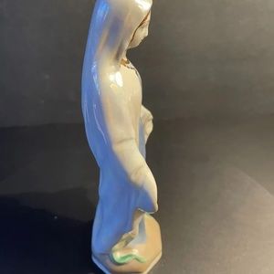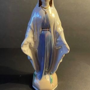 A Virgin Mary Ceramic Figurine. 7 inches x 4 inches and has a glossy finish. No chips or cracks on the figurine.