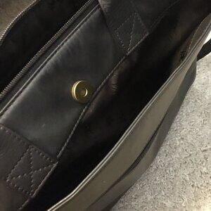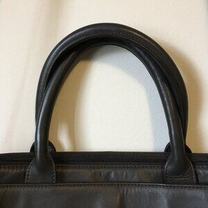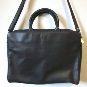 Very good preowned condition, though hardly if ever used. genuine leather, black laptop bag/brief bag. Soft leather, with sturdy structure. In very good overall condition. Almost like new, no wear or weathering. All zippers and clasps in working order. Can be carried by hand or slung over the shoulder.
