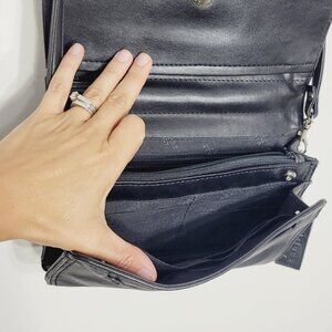 Vintage Visione Women's Black Genuine Leather Adjustable Strap Crossbody Bag One Size