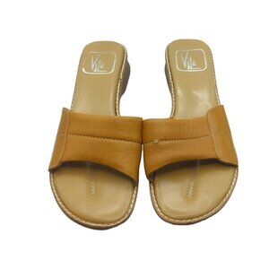 These are tan leather slide sandals by Browns Shoes' Vita brand.