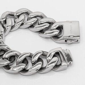 This heavy-duty bracelet is composed of a substantial 1-inch link and clamps shut with our signature Glyph buckle clasp. The double-sided clasp features a laser-etched logo on the reverse side and can be worn facing up or down.