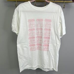 Stylish Viva Glam t-shirt in white with a pink graphic design in collaboration with Ricky Martin and Nicki. Perfect for casual outfit.