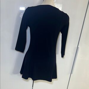 This blue blouse showcases a chic fitted silhouette with a peplum detail that adds a touch of flair. The three-quarter sleeves provide a sophisticated look, perfect for both casual and formal settings.