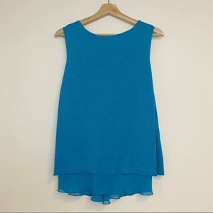 This sky blue tank by label Vivian Wong features a front pleat with multiple layers of textural draped fabrics for a clean effect. In excellent gently used condition with no obvious signs of wear or damage (10/10).