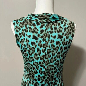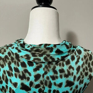 New condition! Teal blue & brown leopard print. Layered scoop neckline. Fully lined.