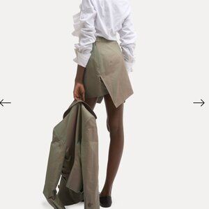 Iconic Westwood tailoring gives this mini an asymmetric high-low hem. Crafted in a rich tonal herringbone fabric.