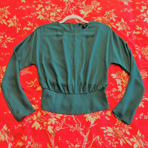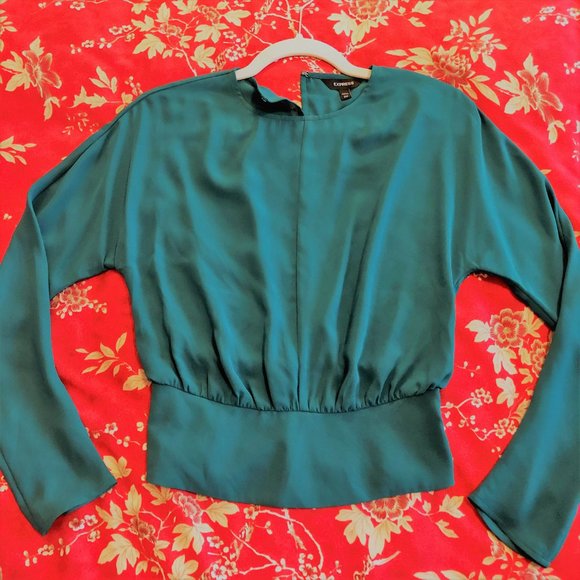 Vivid Green Banded Hem Dolman Blouse by Express - XXS