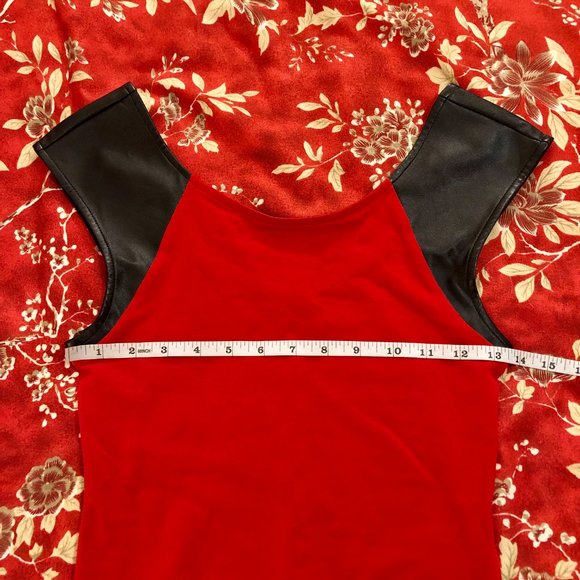 Vivid Red Cotton Tank Top with Black Vegan Leather Shoulders by Express - XS