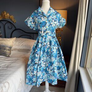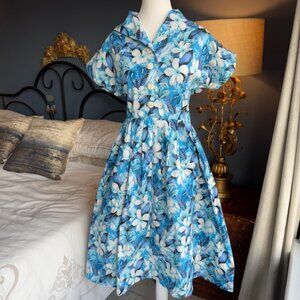 Vivien of Holloway retro Hawaiian print 50s style cotton shirt dress, size 16 UK = 10/12 CA/US.