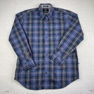 Viyella Mens shirt Tartan plaid Blue / Red / Grey Preppy dress shirt Sz L Read
